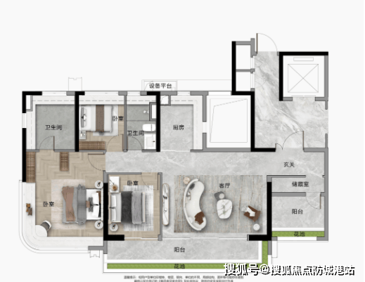 建面约108-110㎡户型,是片区罕见的稀缺小户型,也是入手海珠核心区的最低门槛户型,性价比极高。该户型带入户花园,空间使用率远超市场水平,有效拓展室内使用空间,可作为玄关、储物间或休闲区,实用性拉满;格局方正,最大约4.9米开间大方厅,客厅宽敞明亮,能够满足家庭聚会、休闲娱乐等多种需求;主卧配备270°转角飘窗,全屋采光面约达12米,采光充足,视野开阔,能够欣赏到社区美景,提升居住舒适度,非常适合三口之家或刚需改善家庭入手。
