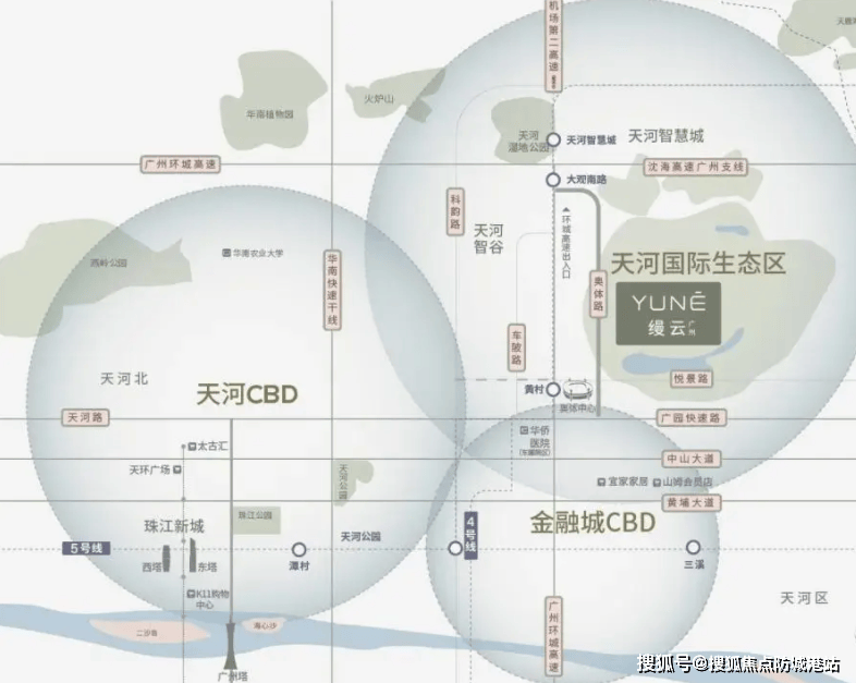 缦云广州坐落于天河区悦景路11号,地理位置极其优越。它隶属于天河国际生态区,这是一个在广州城市规划中具有特殊意义的区域。与传统的中央商务区不同,国际生态区强调的是人与自然的和谐共生,是在高密度城市中保留的一片呼吸之地。项目与天河CBD、金融城两大经济引擎的直线公里。这个距离堪称“黄金尺度”——既足够近,能够让你在工作日轻松享受核心区的繁华资源与高效通勤;又足够远,足以让你逃离市中心的喧嚣与拥挤,回归生活的宁静与本真。